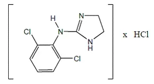 Klonidinhydrochlorid er et imidazolindivativ og findes som en mesomerforbindelse. Det kemiske navn er 2- (26-dichlorophenylamino) -2-imidazolinhydrochlorid. Følgende er den strukturelle formel: