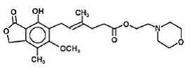 Det kemiske navn for mycophenolat mofetil (MMF) er 2-morpholinoethyl (E) -6- (13-dihydro-4-hydroxy-6-methoxy-7-methyl-3-oxo-5-isobenzofuranyl) -4-methyl-4-hexenoat. Det har en empirisk formel med C 23 H 31 INGEN 7 En molekylvægt på 433,50 og følgende strukturelle formel: