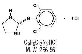 Klonidinhydrochlorid er et imidazolindivativ og findes som en mesomerforbindelse. Det kemiske navn er 2-[(26-dichlorophenyl) imino] imidazolin monohydrochlorid. Følgende er den strukturelle formel molekylære formel og molekylvægt: