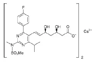Det kemiske navn for rosuvastatin-calcium er bis [(e) -7- [4- (4-fluorophenyl) -6-isopropyl-2- [methyl (methylsulfonyl) amino] pyrimidin-5-yl] (3R5S) -35-dihydroxyhept-6-enoisk syre] Calcium Salt med følgende strukturelle formularer: