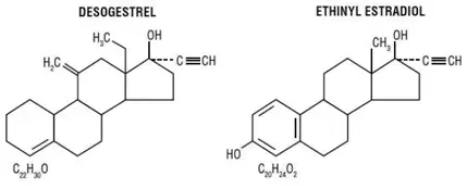 Desogen®-tabletter (desogestrel og ethinyl østradiol tabletter USP) giver et oralt præventionsregime af 21 hvide runde tabletter, der hver indeholder 0,15 mg desogestrel (13-ethyl-11-methylen-1819-dinor-17 alpha-pregn-4-en-20-yn-18-7-7-11 mg ethinyl estragi (19-NOR-1777-7-ol) og 0,03 mg ethinyl estragiol (19-NOR-17777-ol) Alpha-Pregna-135 (10) -trien-20-yne-317-diol). Inaktive ingredienser inkluderer vitamin E -majsstivelse Povidon stearinsyre -kolloidal siliciumdioxid -lactosehydroxypropylmethylcellulose polyethylenglycol titaniumdioxid og talkum. Desogen® indeholder også 7 grønne runde tabletter, der indeholder følgende inerte ingredienser: lactose majsstivelse magnesium stearat FD