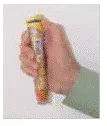 - Træneren indeholder ingen medicin og ingen nål. Trænerens orange ende er nålenden af den rigtige gule epipen eller ægte grønne epipen JR auto-injektor.