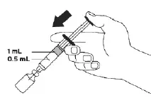 Trin 8 . Hold hætteglasset og sprøjten som vist ( Se figur i )