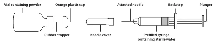 - Umiddelbart efter rekonstitution injicerer opløsningen subkutant eller intramuskulært i overarmen lår eller bagdel. Derudover kan sundhedsudbydere administrere intravenøst.