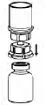 - Med Haegarda -hætteglasset placeret fast på en flad overflade, invert det fortyndingsmætthæt med mix2Vial -overførselssættet fastgjort og skub plastens spids af den gennemsigtige adapter fast gennem midten af stopperen af Haegarda -hætteglasset (figur 4).
