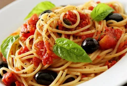 Hvis du higer efter pasta, er dette et ret sundt valg. Start med hele hvedespaghetti, og tilsæt et strejf af olivenolie til marinarasausen. Det er OK, fordi det hjælper din krop med at absorbere et vigtigt tomatnæringsstof (lycopen), der beskytter dine celler. Bare overdriv ikke fedt og se sukkerindholdet i din sauce. Disse kan bunke på ekstra kalorier. Lean grillet kyllingebryst er en fantastisk måde at tilføje noget protein, hvis du vil have det.