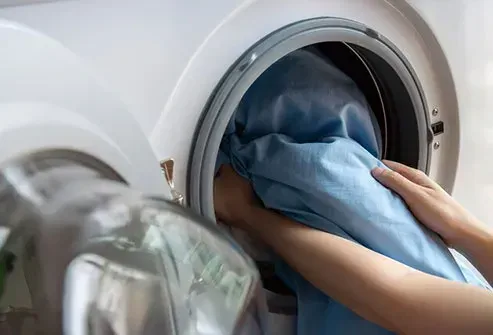Hvis du eller din partner har været syg, kaster dine ark i vasken med det samme for at dræbe eventuelle dvælende bakterier. De fleste bakterier eller vira kan overleve på bløde overflader i minutter til timer. Varigheden varierer baseret på den specifikke mikrobe. For eksempel lever influenzavirus på væv i kun 15 minutter, men nogle mavefejl kan overleve på stoffer i 4 timer.
