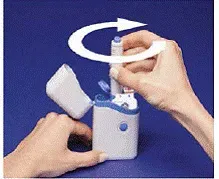 - Læg pennen i den åbne patronpakke. Drej det til højre (med uret), indtil det ikke drejer mere (ca. en halv tur) (se Figur c ).