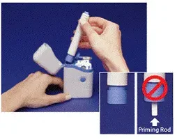 - Efter hver brug skal pennen sættes tilbage i bæretilfælde for at nulstille den hvide primingstang inden næste brug.