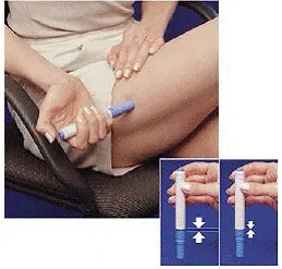 - Hold pennen stadig for mindst 5 sekunder mod huden. Hvis pennen er taget væk fra din hud for tidligt, vil du ikke modtage al medicinen, eller den kan lække ud af pennen.