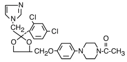 Ketoconazol er CIS-1-acetyl-4- [4-[[2- (24-dichlorophenyl) -2- (1H-Imidazol-1-ylmethyl) -13-dioxolan- 4-yl] methoxy] phenyl] piperazin og har følgende strukturelle formula:
