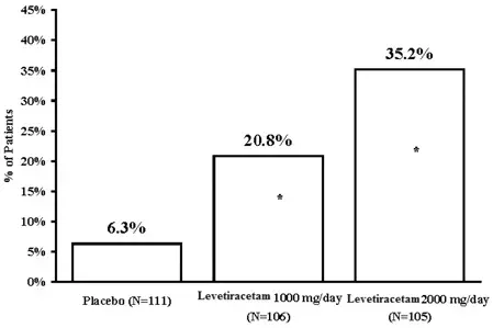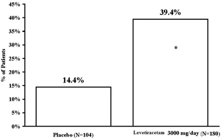 Sammenligningen af levetiracetam 2000 mg/dag til levetiracetam 1000 mg/dag for responderhastighed var statistisk signifikant (p = 0,02). Analyse af forsøget som en krydsning gav lignende resultater.