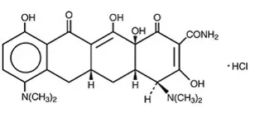 Minocin® Minocycline Hydrochloride er et semisyntetisk derivat af tetracyclin 47- Bis (dimethylamino) -144a55a61112a-oktahydro-3101212a-tetrahydroxy-1111-dioxo-2-naphthacenecarboxamide MonohydroThyDoDideDide. Dens strukturelle formel er: