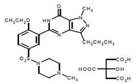 Sildenafil citrat betegnes kemisk som 1-[[3- (67-dihydro-1-methyl-7-oxo-3-propyl-1 H -pyrazolo [43- d ] pyrimidin-5-yl) -4-ethoxyphenyl] sulfonyl] -4-methylpiperazincitrat og har følgende strukturelle formel:
