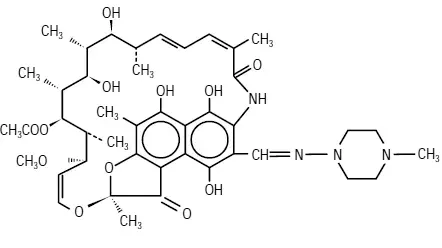 3-[[(4-methyl-1-piperazinyl) imino] methyl] rifamycin eller 569171921-hexahydroxy-23-methoxy-241216182022– heptamethyl-8- [N- (4-methyl-1-piperazinyl) Formimidoyl] -27 (EpoxypentaDeca- [N- (4-methyl-1-piperazinyl) Formimidoyl] -27 (EpoxypentaDeca- [N- (4-methyl-1-piperazinyl) Formimidoyl] -27 (EpoxypentaDECA [11113] Trienimino) Naphtho [21-B] Furan-111 (2H) -DIONE 21ACETATE.