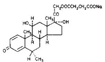 Det kemiske navn for methylprednisolon-natrium-succinat er pregna-14-dien-320Dione21- (3-carboxy-1-oxoproxy) -1117-dihydroxy-6-methyl-monosodiumsalt (6a 11β), og molekylvægten er 496.53. Den strukturelle formel er repræsenteret nedenfor: