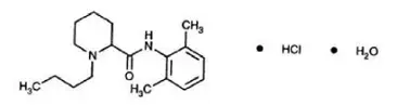 Bupivacaine HCl er en 1-butyl-N- (26-dimethylphenyl) -2-piperidinecarboxamidhydrochloridmonohydrathvidt krystallinsk pulver, der er frit opløseligt i 95% ethanolopløselig i vand og lidt opløseligt i acetone. Den molekylære formel af bupivacaine er C 18 H 28 N 2 O og dens molekylvægt er 288,4. Det har følgende strukturelle formel: